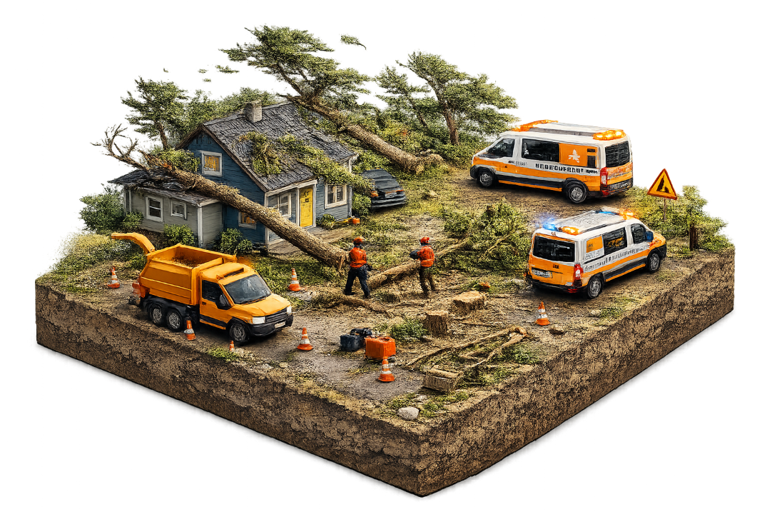 Arvioimme tilanteen kokonaisuutena ja valitsemme turvallisimman tavan puun poistamiseen. Kiireellisissä tapauksissa huomioidaan erityisesti riskit, puun kunto sekä ympäristön turvallisuus. Tarjous muodostuu työn vaativuuden, kiireellisyyden ja tarvittavan kaluston mukaan.